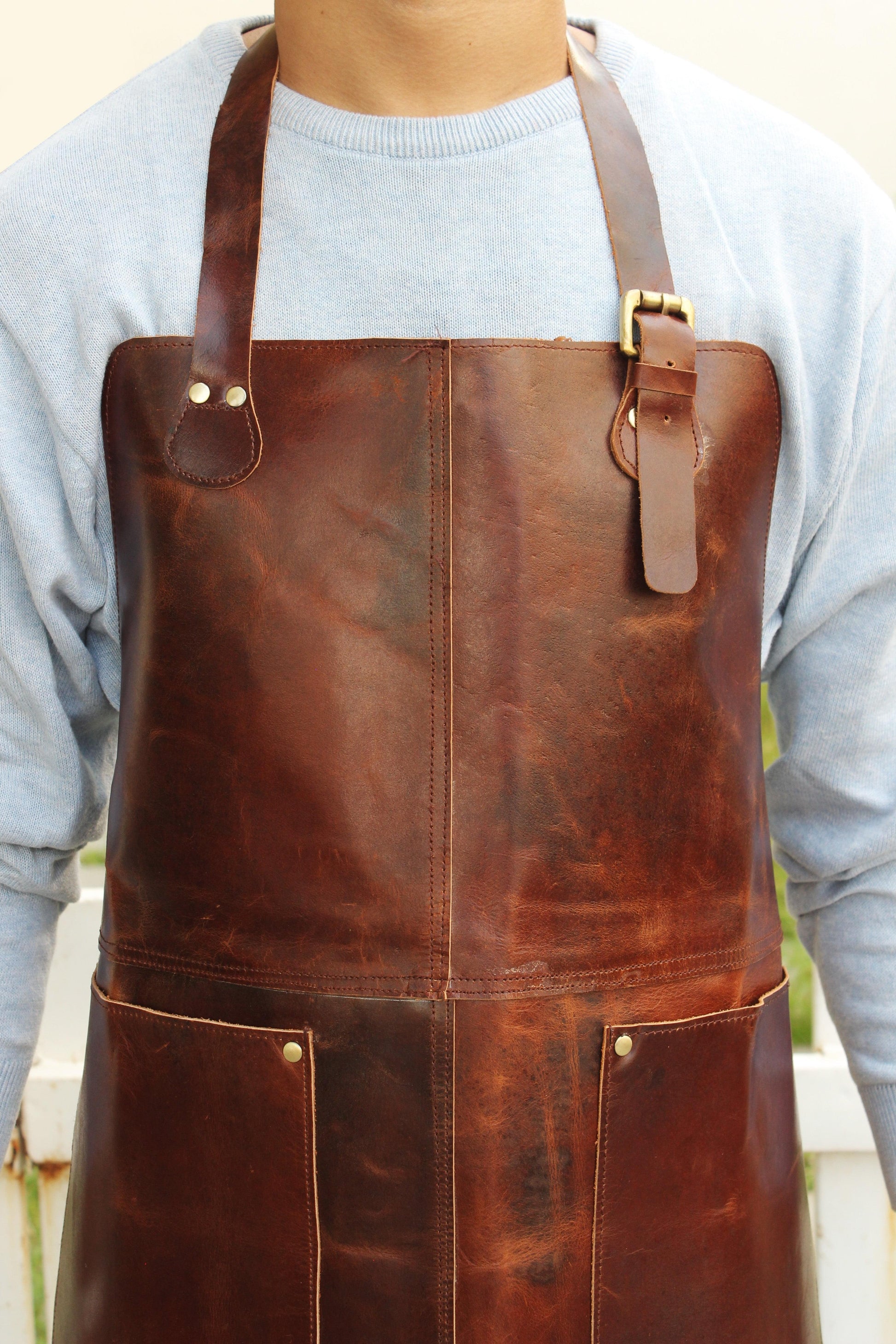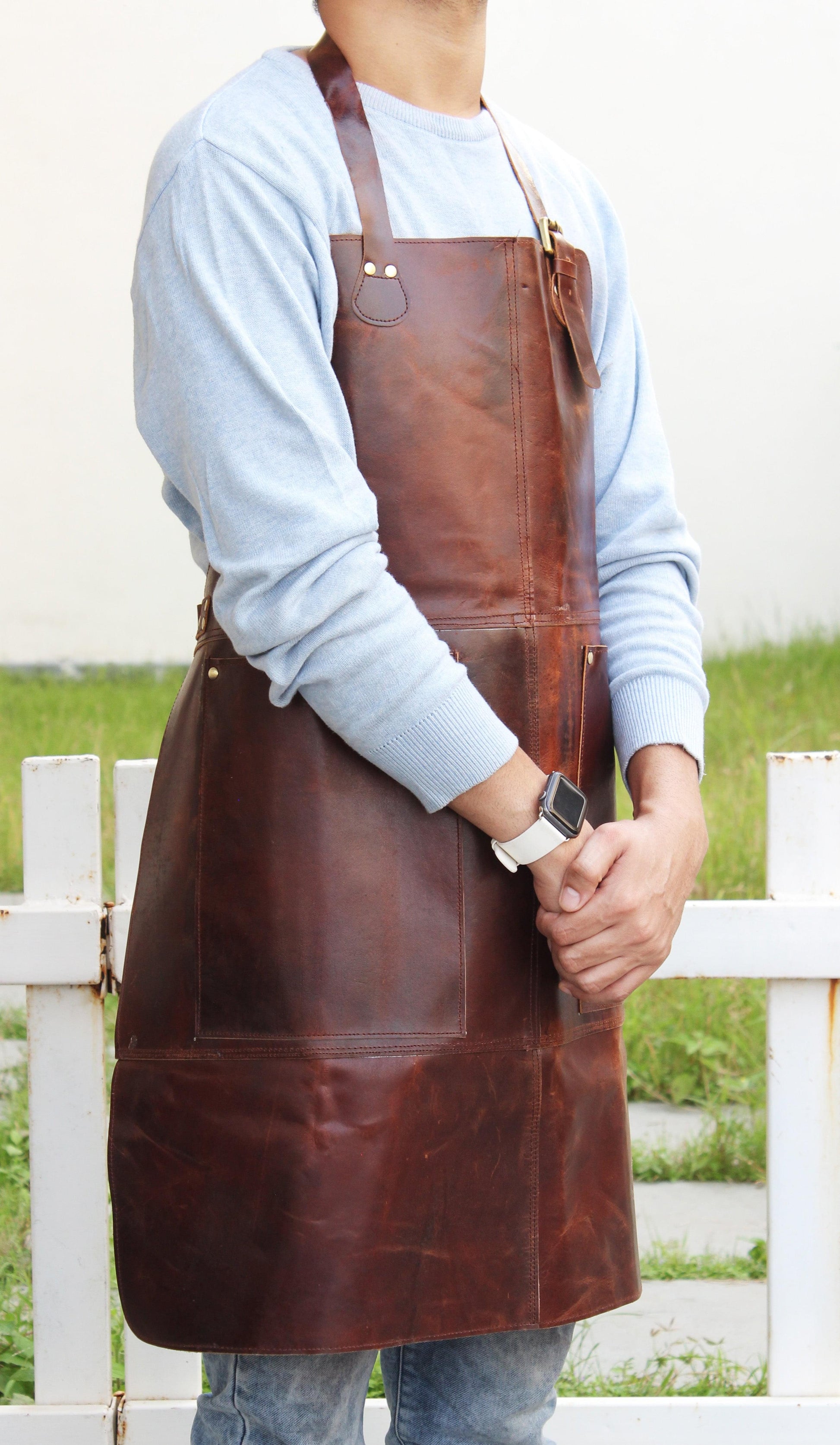Genuine Full Grain Leather Apron- Brown