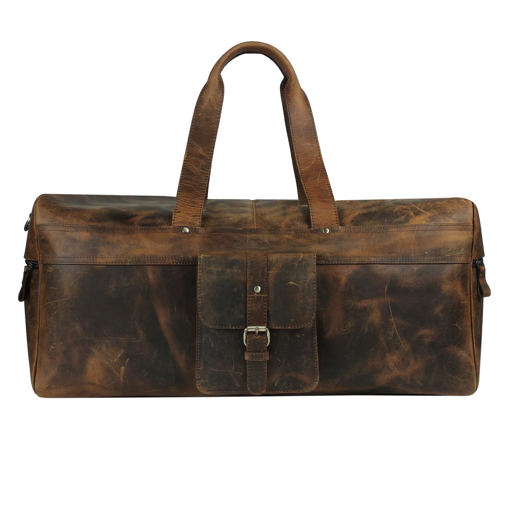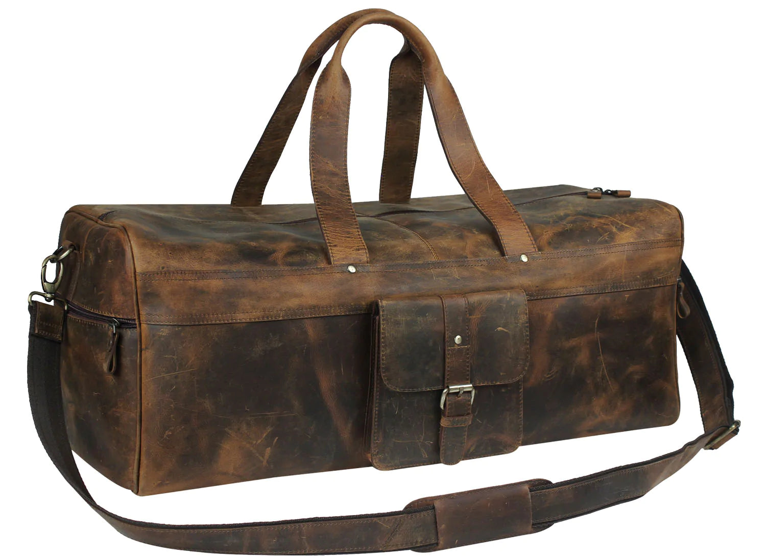 • Premium Quality Material- Genuine crazy goat leather is used to make this duffle bag. Long-term durability is ensured by superior quality. When you stuff the duffle tote with a lot of stuff, the high-density canvas won't rip or tear. Furthermore, the high-quality solid zinc-alloy hardware will not corrode easily.