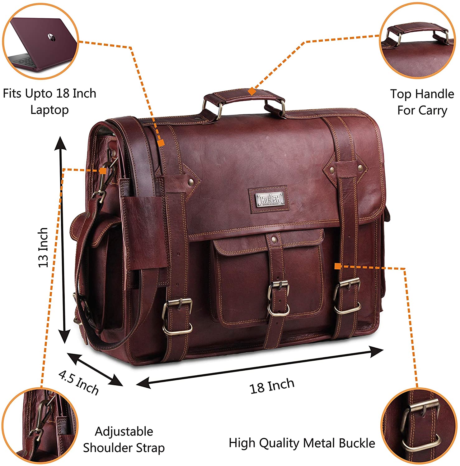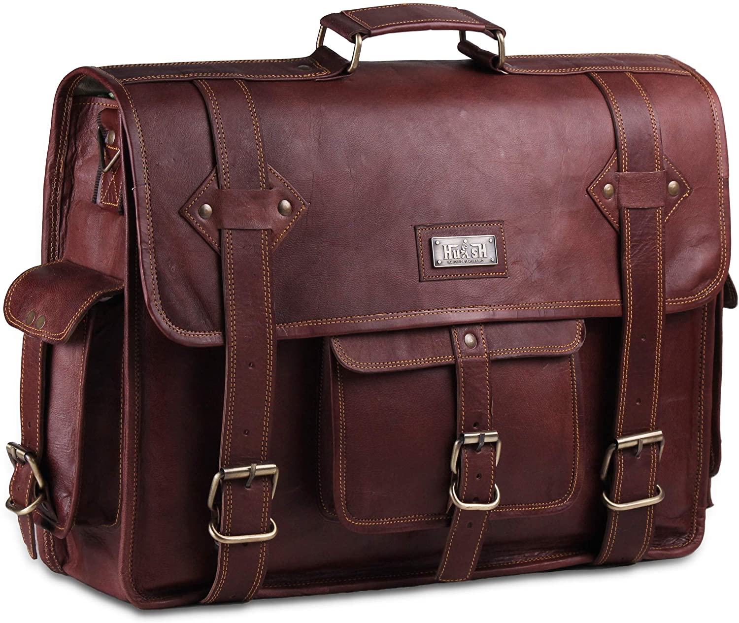 Hulsh Leather offering a vintage-inspired black leather laptop briefcase bag for everyday use, this black leather messenger bag is perfect for the modern traveler with a love for timeless style. The Vintage Black Leather Briefcase Laptop Messenger Bag with Top Lift Handle is crafted from oil-tanned goat hide.