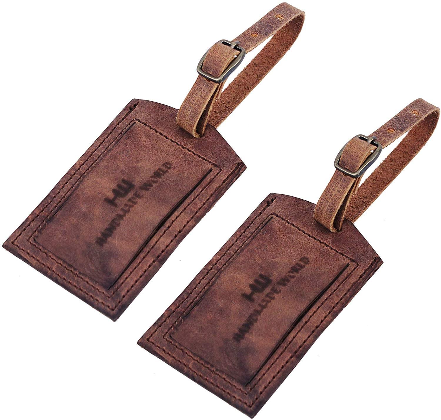 This genuine handcrafted buffalo Leather Luggage Tags Baggage Tags ID Labels Fit for all types of leather or Non-leather Suitcases Backpack comes with a set of 2 Pieces.