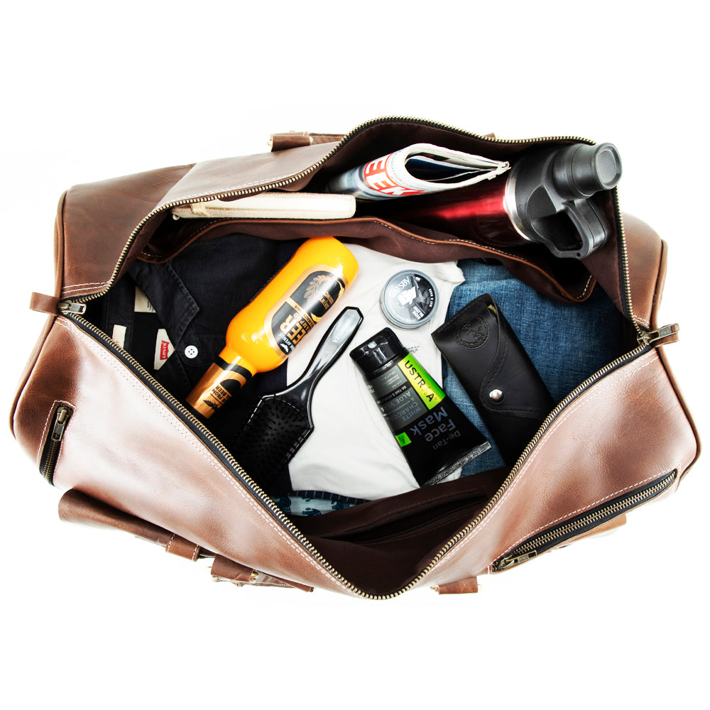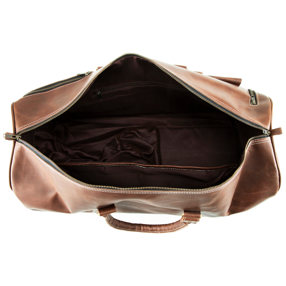 This leather weekender bag for men contains a double adjusted shoulder strap with a shoulder pad which makes it a comfortable carry-on bag while travelling, hiking or during camping. Our leather duffle bag has enough space for carrying your clothes, shoes, accessories etc. In this leather travel bags for men there is a separate compartment which is easy to use and you can organize your stuffs better to make your journey hassle-free.
