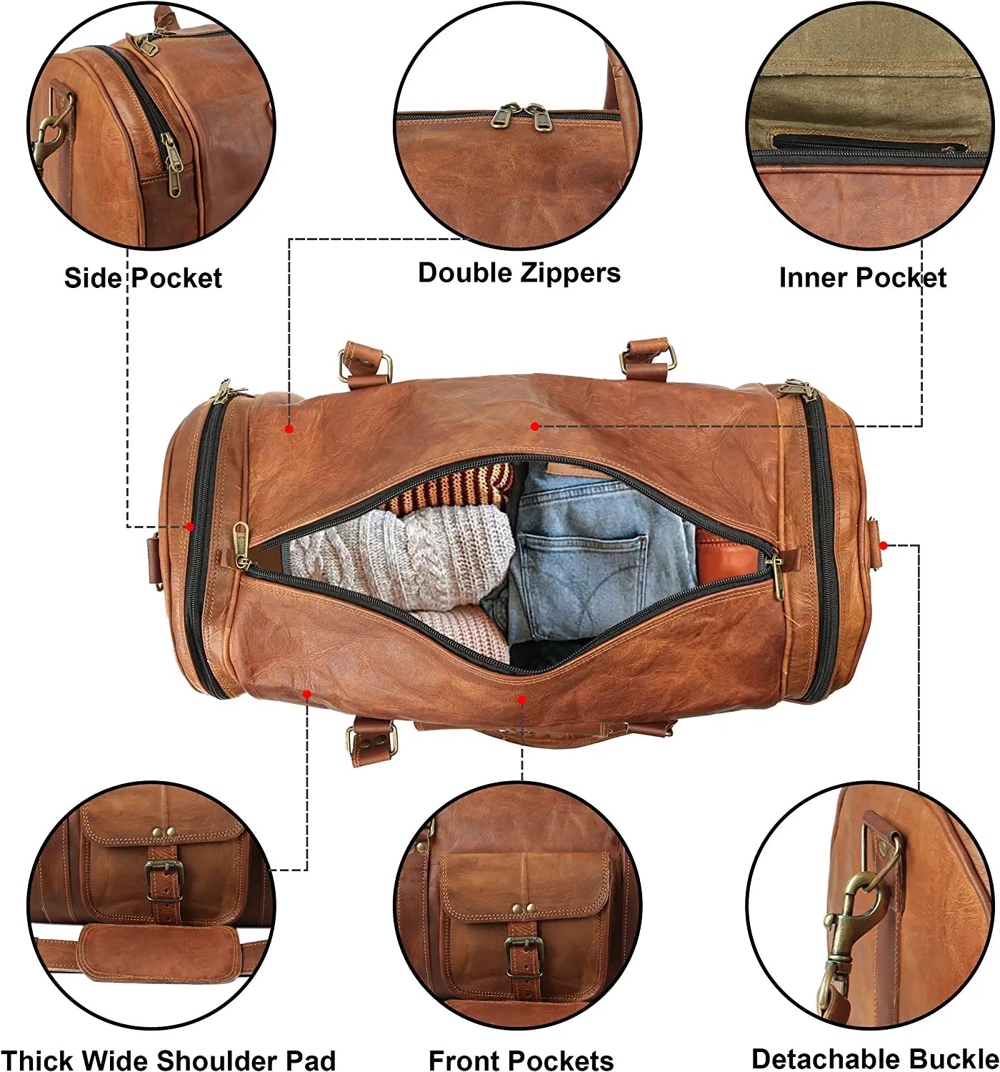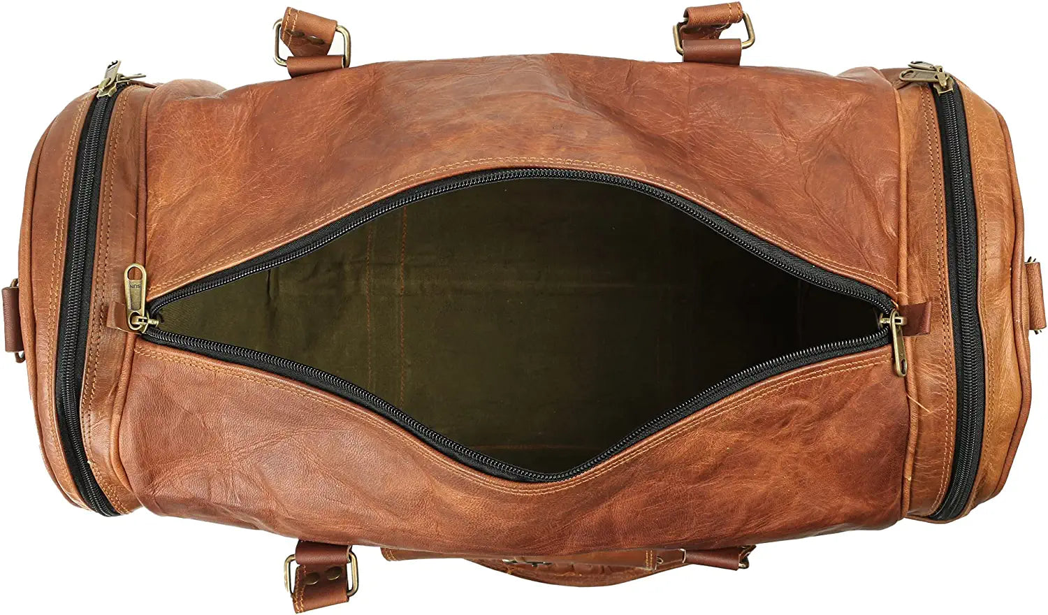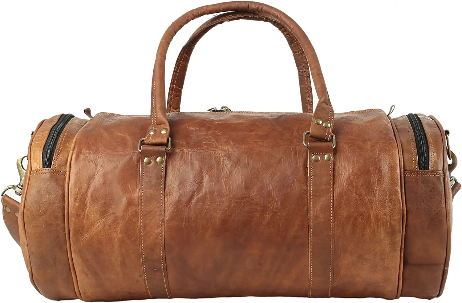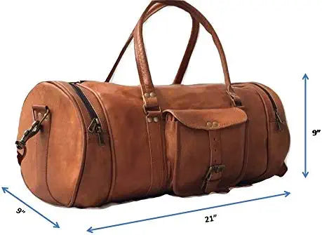 • GenuineĀ Leather - Genuine Leather Duffle Bag made of Real Goat Leather, not from PU or Faux which maintains its quality over time Product can be utilized for a longer duration probably for decades if properly stored and maintained.