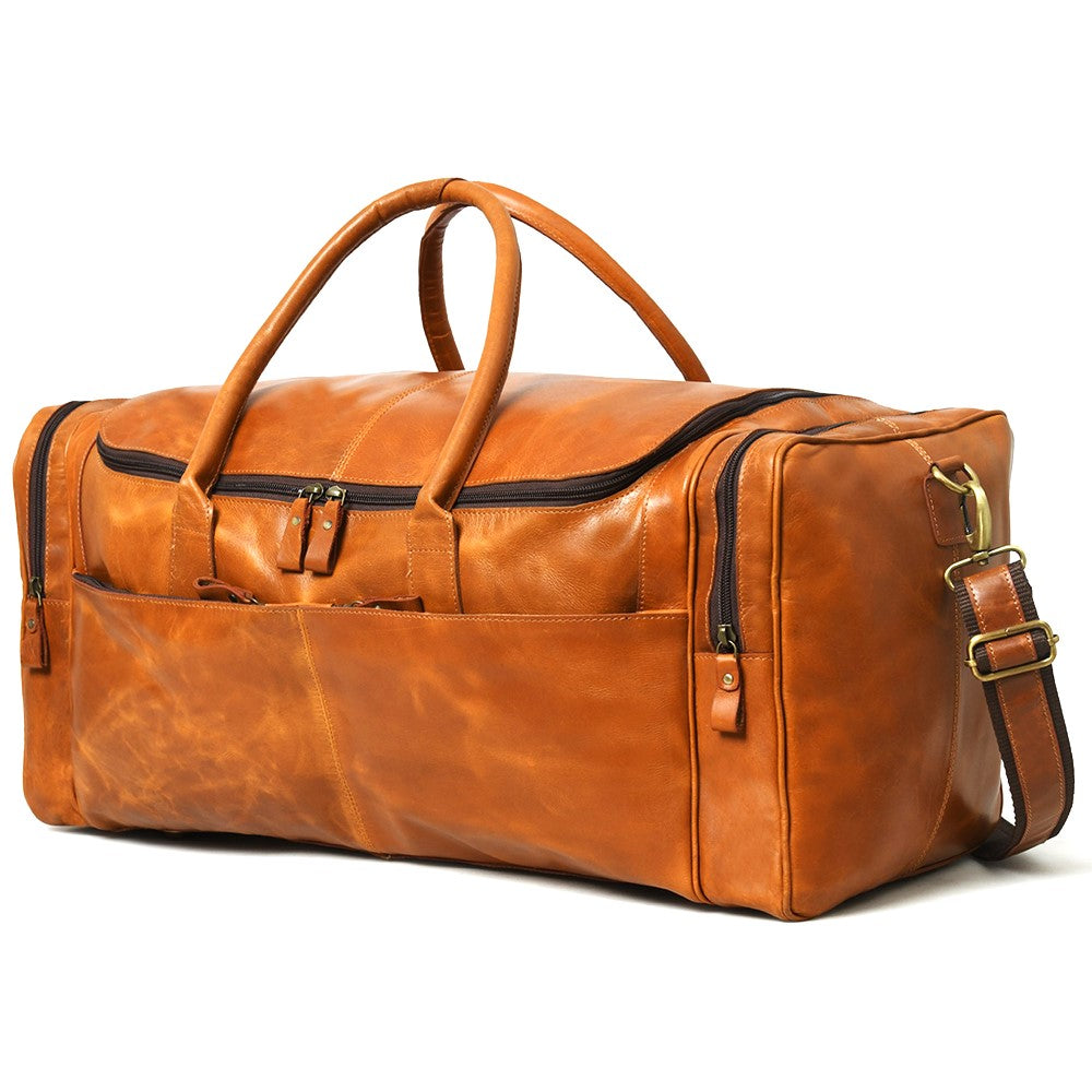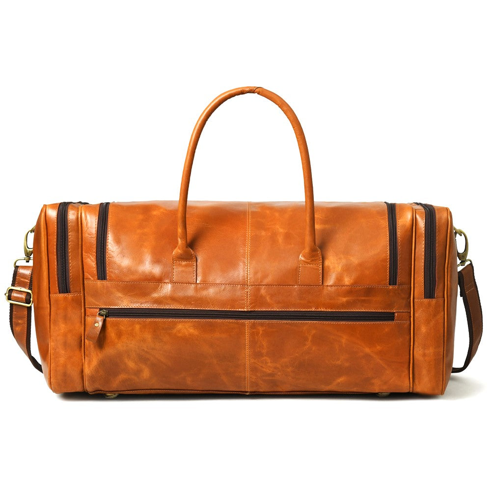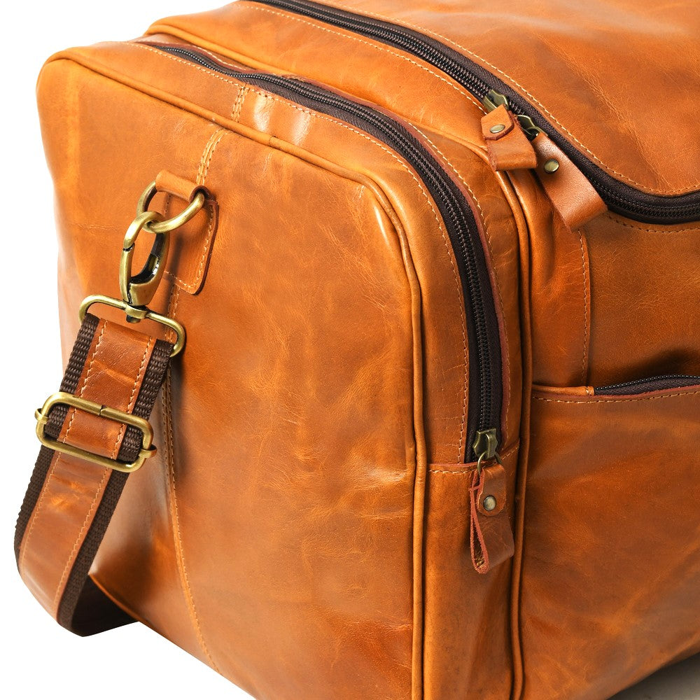 This tan leather duffle bag is made of 100% genuine buffalo leather which is durable partner for your travels or in professional life. With time the color, texture and character gets richer. A great carry on overnight bag is handcrafted by skilled artisans to lasts for years. Our leather luggage bag is perfect for weekend gateway plans with spacious, super stylish and functional to carry all your travel necessities.